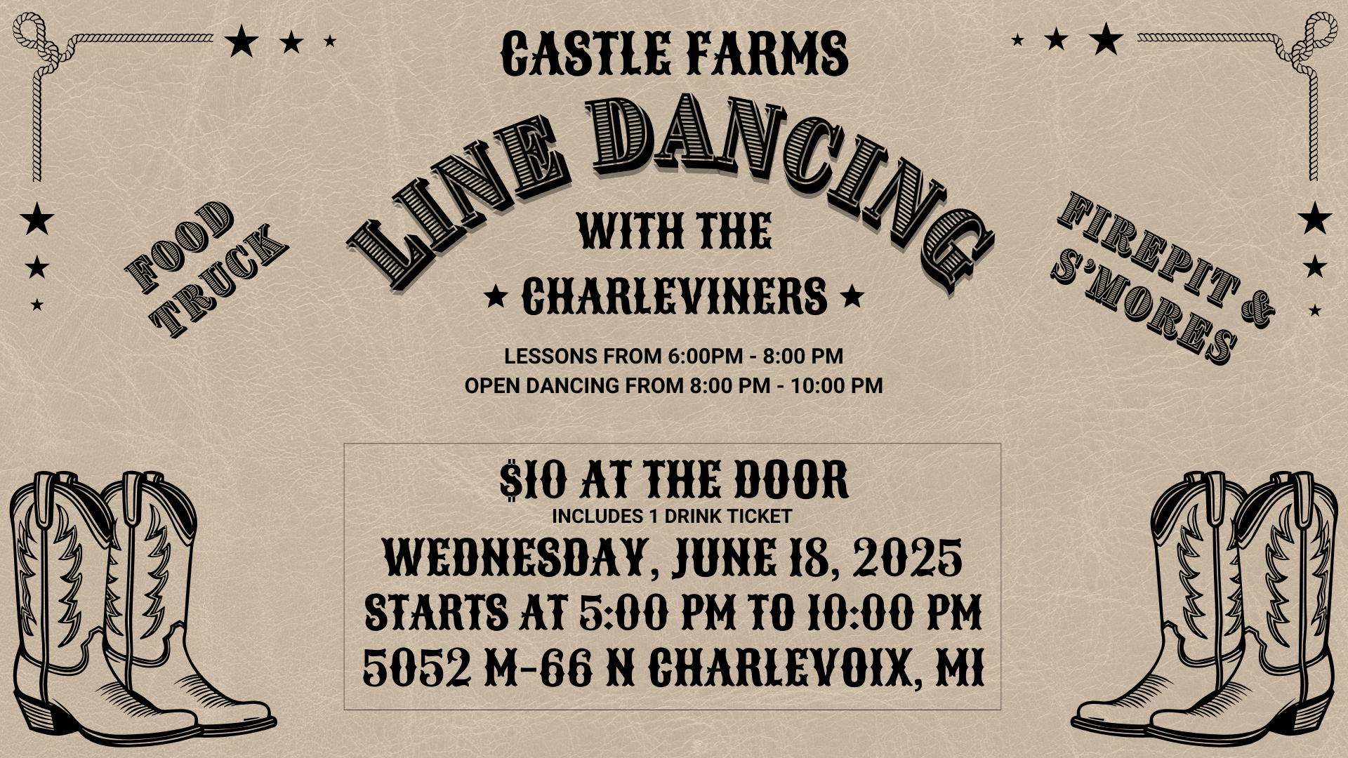 Join us for an unforgettable night of boots, tunes, and fun at Castle Farms!