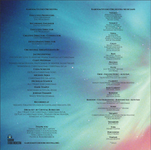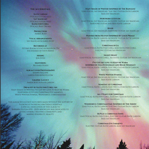 Finally, the holiday album you’ve been waiting for from The Accidentals! This 13-track album, created with the highly acclaimed Kaboom Studio Orchestra out of Cleveland, OH, is packed with three-part harmonies, a killer horn section, and gorgeous orchestral scores.