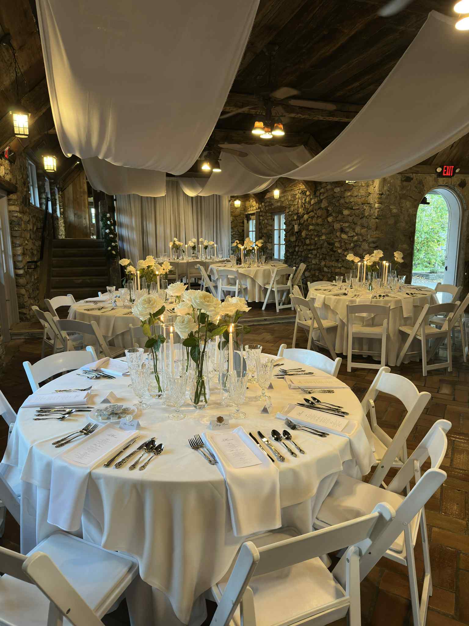 Furniture & Dรฉcorย – Beautifully set tables and chairs for your intimate gathering.