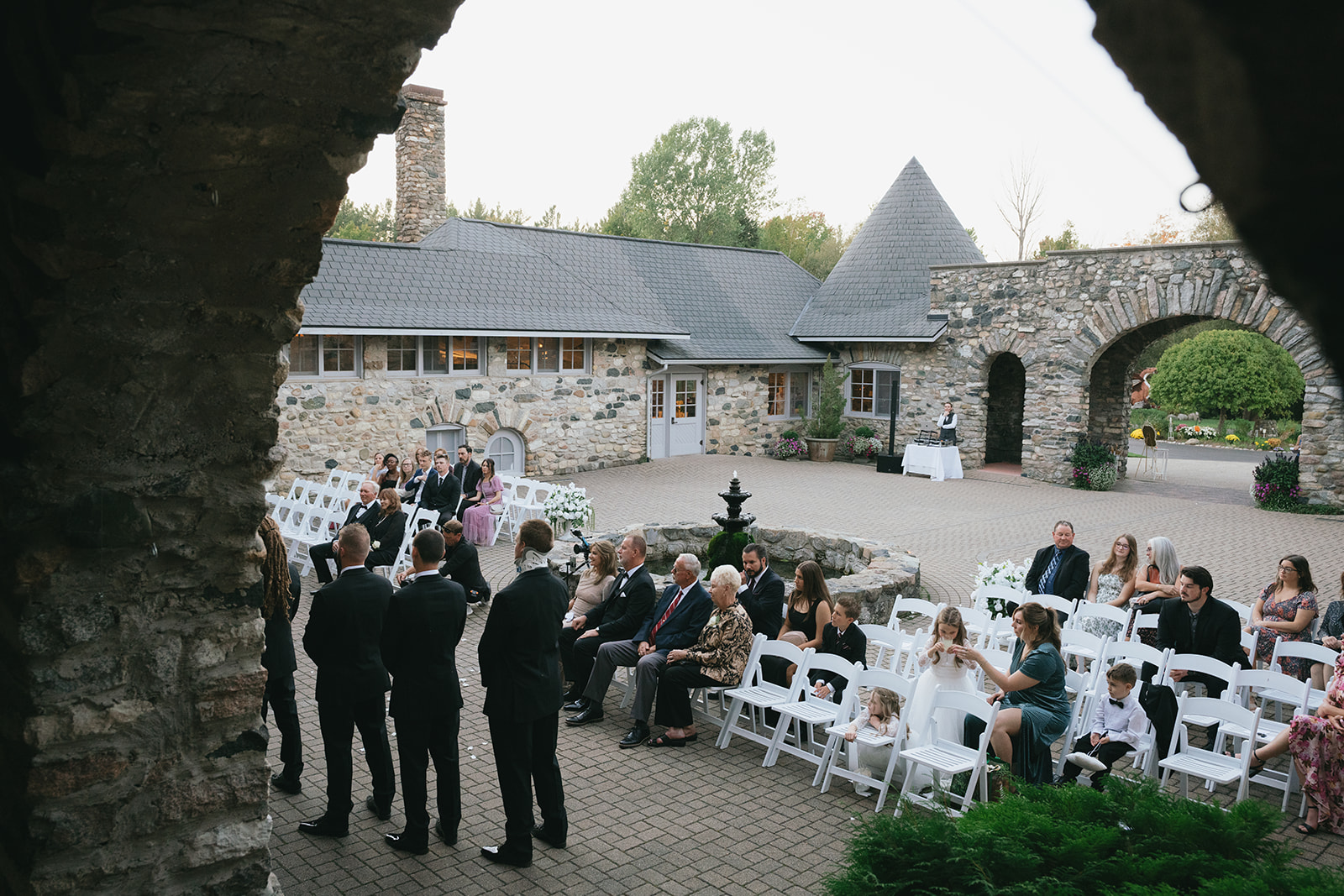 Your intimate wedding deserves a breathtaking backdrop. At Castle Farms, we offer a dedicated space for your Michigan microwedding in theย The Queenโs Courtyard. The Queenโs Courtyard at Castle Farms features stunning stonework and a graceful fountain, creating a timeless and romantic setting for any celebration. And for the reception, we offerย The Castle Pub (formerly Queenโs Tavern).ย This charming space serves as the reception location for our microweddings, offering a relaxed and intimate atmosphere following your courtyard ceremony.
