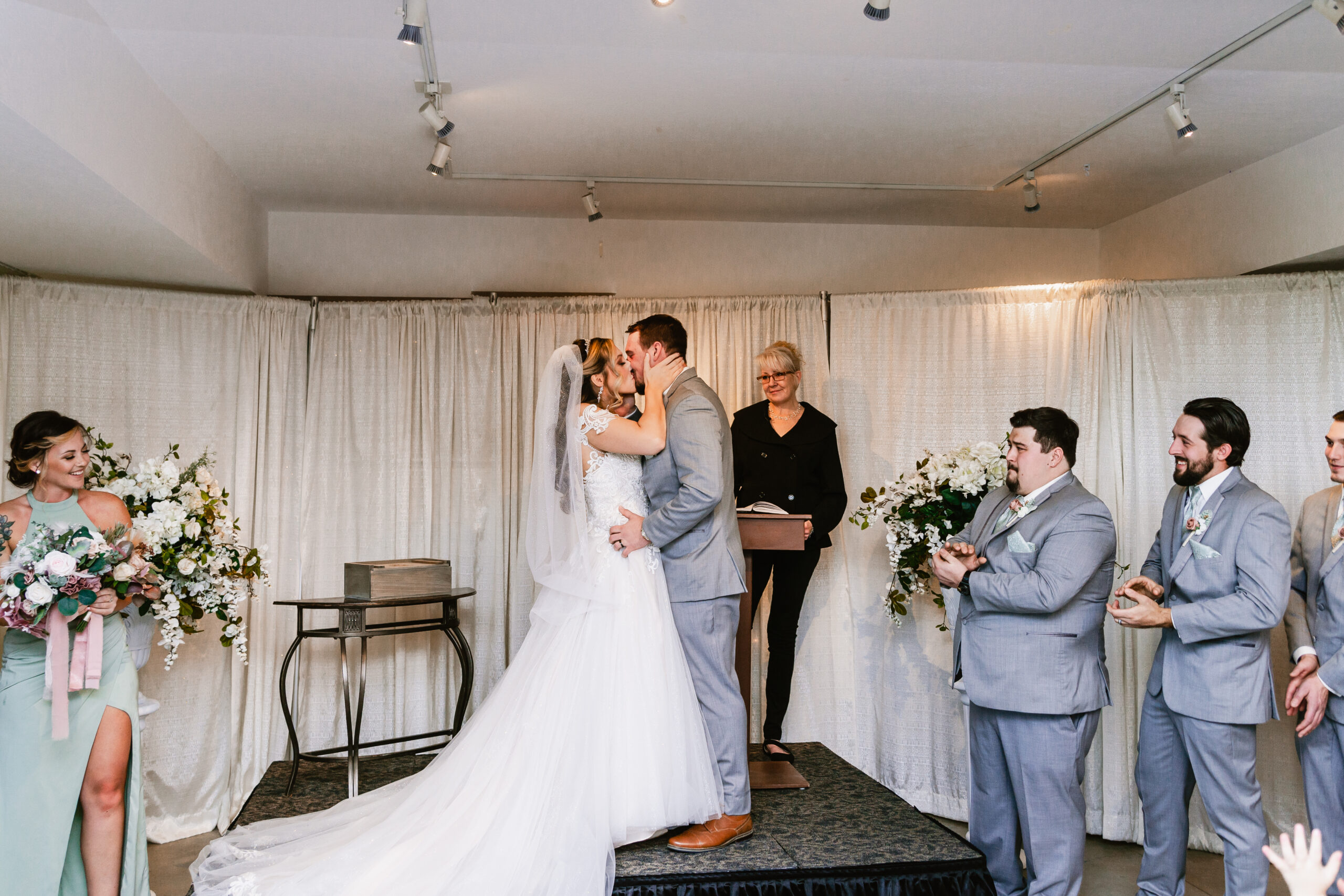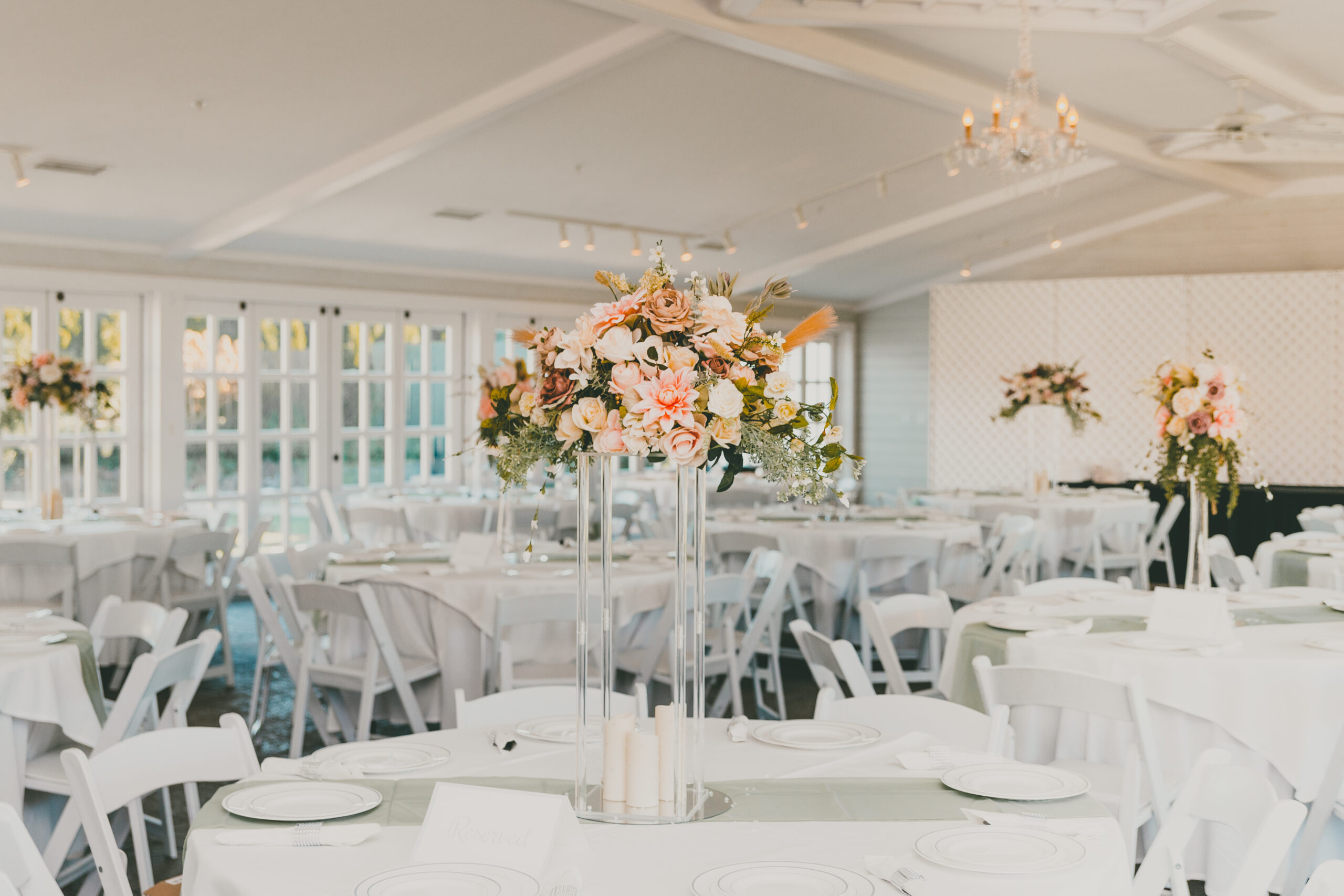 The East Garden Room is a spacious and stately reception room, perfect for the most classic wedding visions, no matter how simple or ornate. This stunning blank canvas features an attached bar area for effortless mingling, and French doors offer endless garden views.ย Five crystal chandeliers add a touch of sparkle while leaving more than enough room for your special touches to shine. Paired with the King’s Gallery ceremony location, your guests will enjoy views of the King’s Grand Courtyard as they arrive to witness your union followed by a lovely stroll into your reception room awaiting the evening’s celebration.